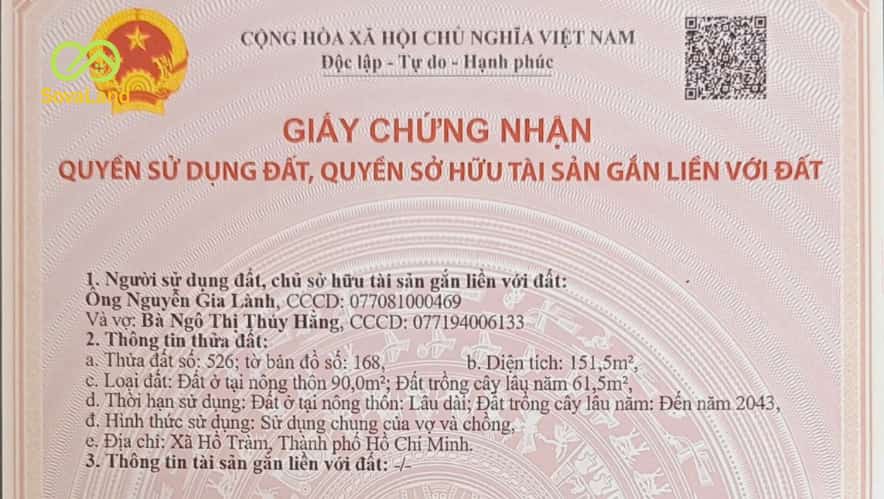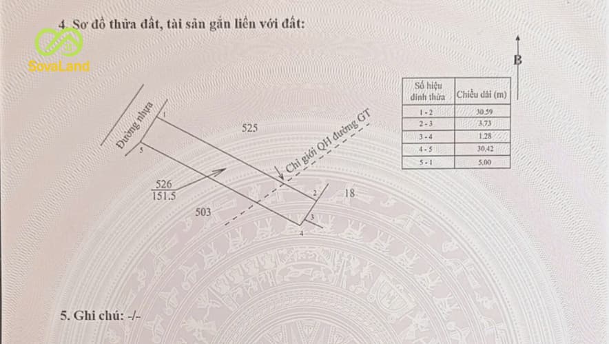Diện tích: 5x30m, tổng 150m², trong đó 90m² thổ cư.